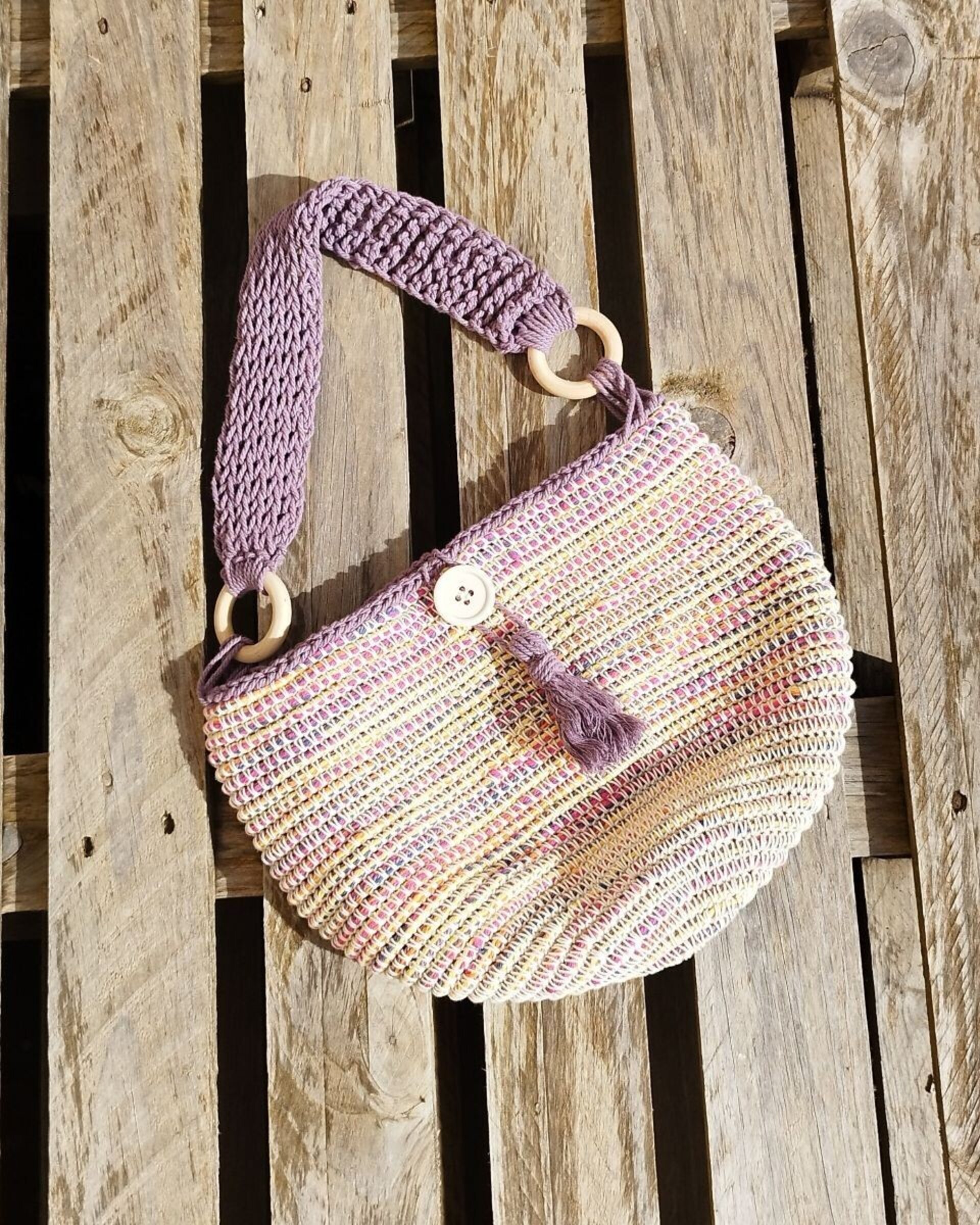 Cada uno de estos bolsos está tejido a mano. Artesanía moderna hecha con técnicas de toda la vida. Cada bolso es único, aunque se repita nunca sale otro igual y eso es lo que hace de las cosas hechas a mano algo tan especial.